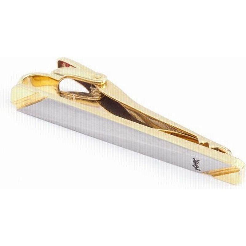 yves saint laurent イヴサンローラン ysl ロゴ ストーン ブローチ ゴールド系 中古