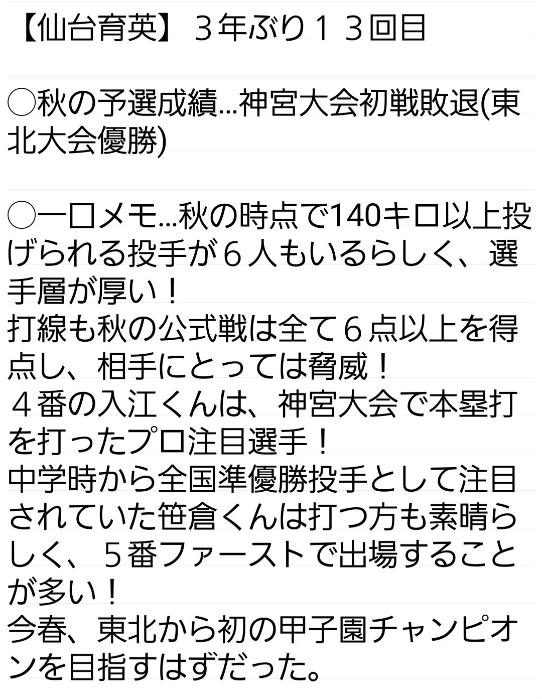 仙台育英秀光中 野球太郎web 高校野球からプロ野球ドラフト情報まで