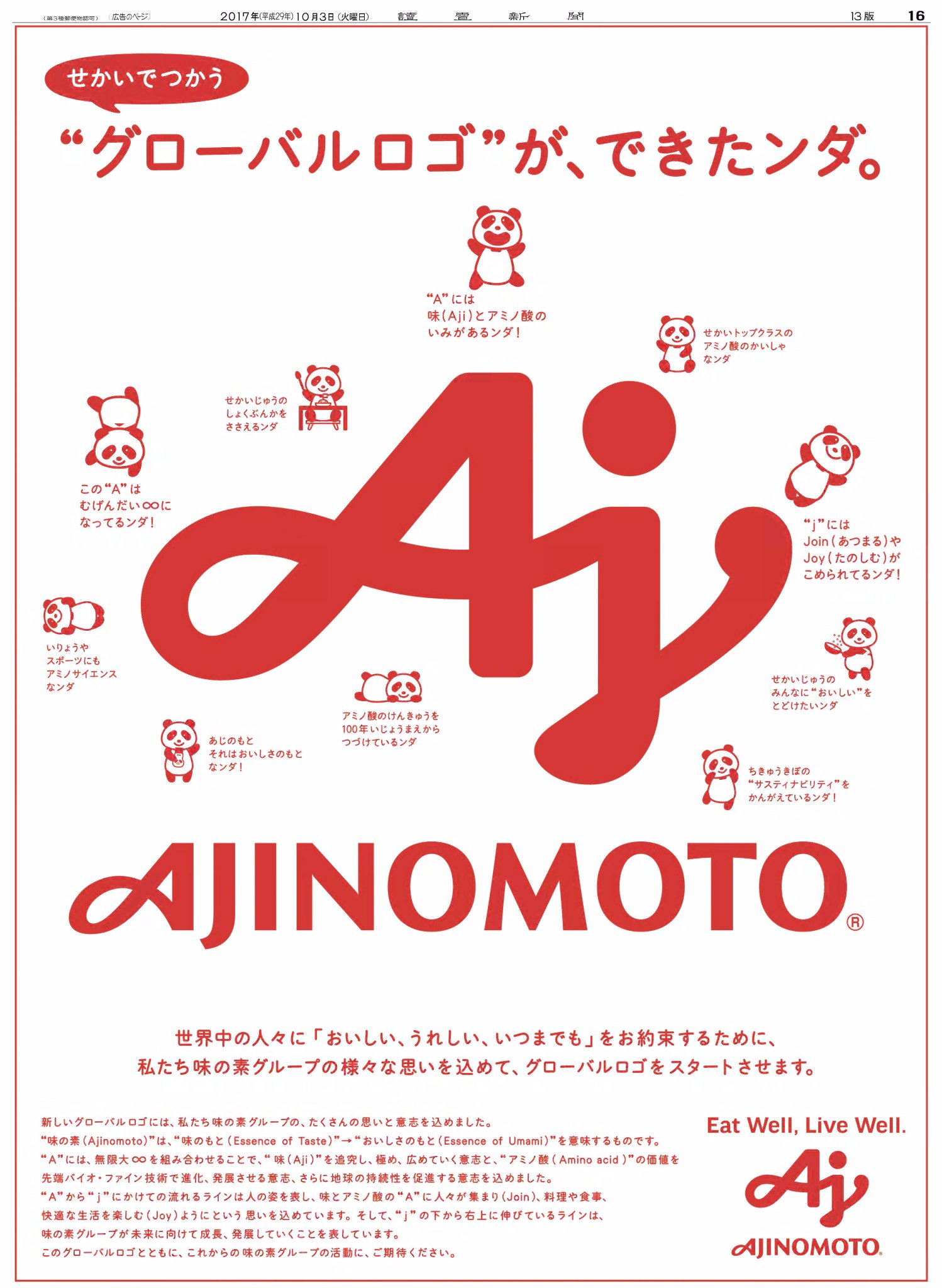 味の素ウェブサイトのための各種ロゴ ポップアップ グラフィックス