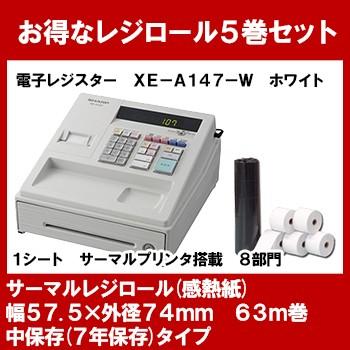 8309558s イーコンビ店 スタンダードタイプ レジロール5巻付きセット xe a147 w xea147w ホワイト 本体 シャープ sharp 電子レジスター xe a147 w xea147w ホワイト